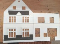 04.04.2018 Ostern ist vorbei und ich war nicht untätig.Weiter gehts Richtung Wuppertal-Wichlinghausen.Schwelm hatte viel Industrie und damit gehts in Wuppertal weiter. Da ich noch eine fertige Fabrik aus einem Kibri Bausatz hatte,musste ich die natürlich irgendwie unterbringen.Sie spiegelt nicht ganz den Industriebau vom Foto wieder aber stellt einen guten Kompromiss da. Da die orange Fassade natürlich nicht so dolle aussah,habe ich über Ostern den Picasso gemacht und ordentlich im Farbtopf gerührt.So sieht es jetzt eher nach alter Fabrik aus wo auch gearbeitet wird. Die Mauer hat ihr Geländer bekommen und die Schlosserei ihren Zaun.Probe für die Anzahl der Gaslaternen 6 oder 4.Mein Favorit ist 4,sieht aufgeräumter aus. ( 5. Bild ) 31.03.2019 Soooo,jetzt ist guter Rat teuer.Ich habe den Bahnhof Schwelm-Loh verkehrt gebaut.:-( Also folgt ein kompletter Neubau des Gebäudes. Das waren die Bilder die ich bisher hatte. Die Vorderansicht zeigt nicht das ganze Gebäude,es fehlt links ein Teil.Den habe ich mit viel Fantasie gebaut. Dann tauchten neue Bilder auf,Facebook sei Dank.Vor allen die Gruppe "Heimatkunde Schwelm" zu der es auch eine Heimatkundliche Webseite gibt. heimatkunde-schwelm.de Anhand der Luftaufnahme sieht man das der Anbau auf der rechten Seite einen Versatz nach hinten hat,was ich vorher auf den zur Verfügung gestandenen Bilder nicht gesehen habe. jetzt gehts an den Neubau. Ich probiere hier auch die Zackenschere Schiefer schneide Methode vom Dr. Peter Holbeck (das seelige Modellbahnlächeln und Wuppertalachse.de ) Das Gebäude wurde um 6cm verlängert und Anhand des Gleisseite Bild neu angefertigt.Das Balkenwerk vom Eingang wollte ich unbedingt so erhalten und habe es vorsichtig vom alten Gebäude getrennt. 09.04.2019 Das erste Fassadenteil ist "geschiefert".Ich glaube ich habe jeden mm² persönlich kennengelernt.:-) Update 22.04 Giebelwand geschiefert und Fenster eingebaut. 07.07.2019 Das dritte Fassadenteil ist fertig.Dank Sommerloch hat es etwas länger gedauert.:-) 14.11.2019 Eine Uhr für den Bahnhof.Das vierte Fassadenteil mit Anbau wartet noch auf den Anfang.