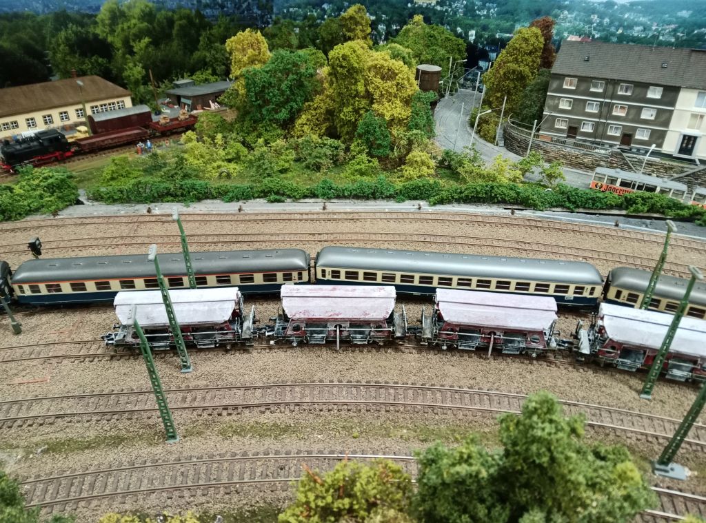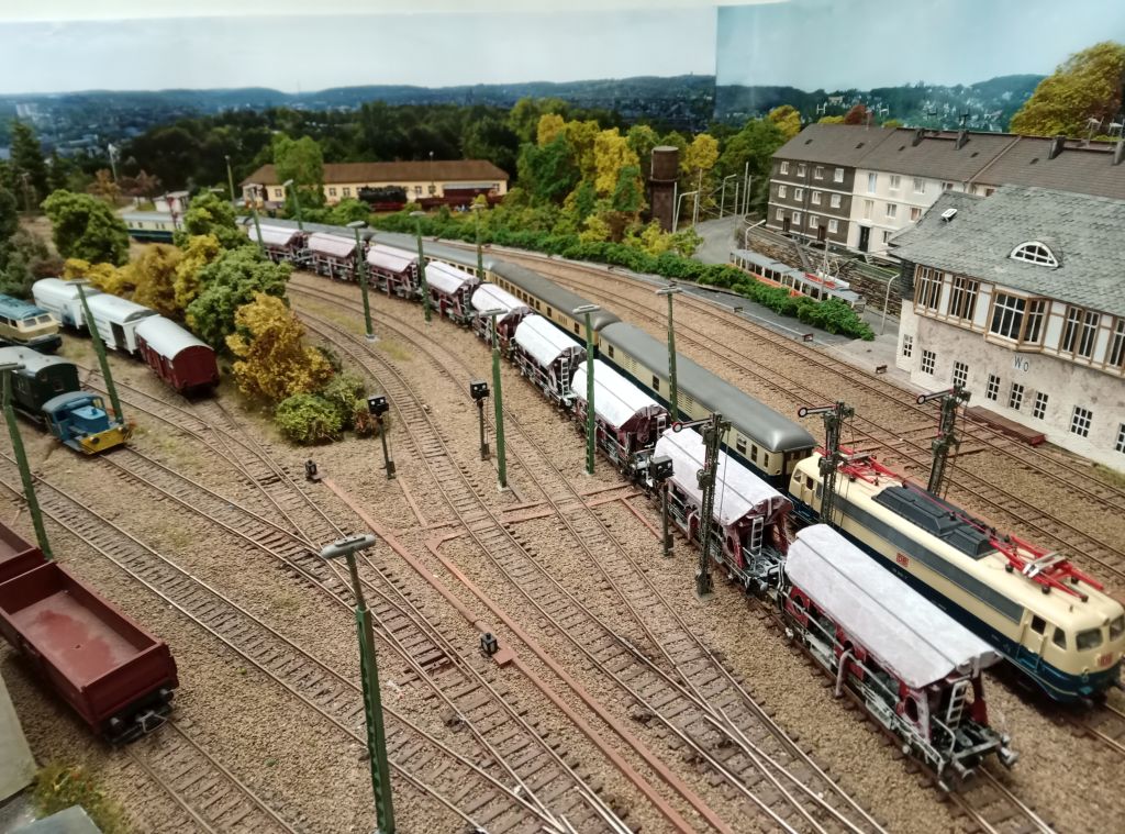 16.06.2024 Ich habe mich mal dem hinteren Teil gewidmet,bevor ich nicht mehr dran komme. Möbelfabrik Kollbach ist hinzu gekommen.Die Fabrik stand eigentlich weiter links vom Bahnhof,aber hinter dem Bahnhof nur Bäume setzen war mir zu eintönig. Als Halbrelief sollte sie der Abschluss sein. 04.08.2024 Weiter gehts im Bahnhof Loh Umfeld. 01.09.2024 07.09.2024 22.12.24 Der Kleingarten Verein Neuloh hat wieder seinen Platz erhalten.Nun gehts an die Landschaftsgestaltung rundum den Schwelmer Tunnel.